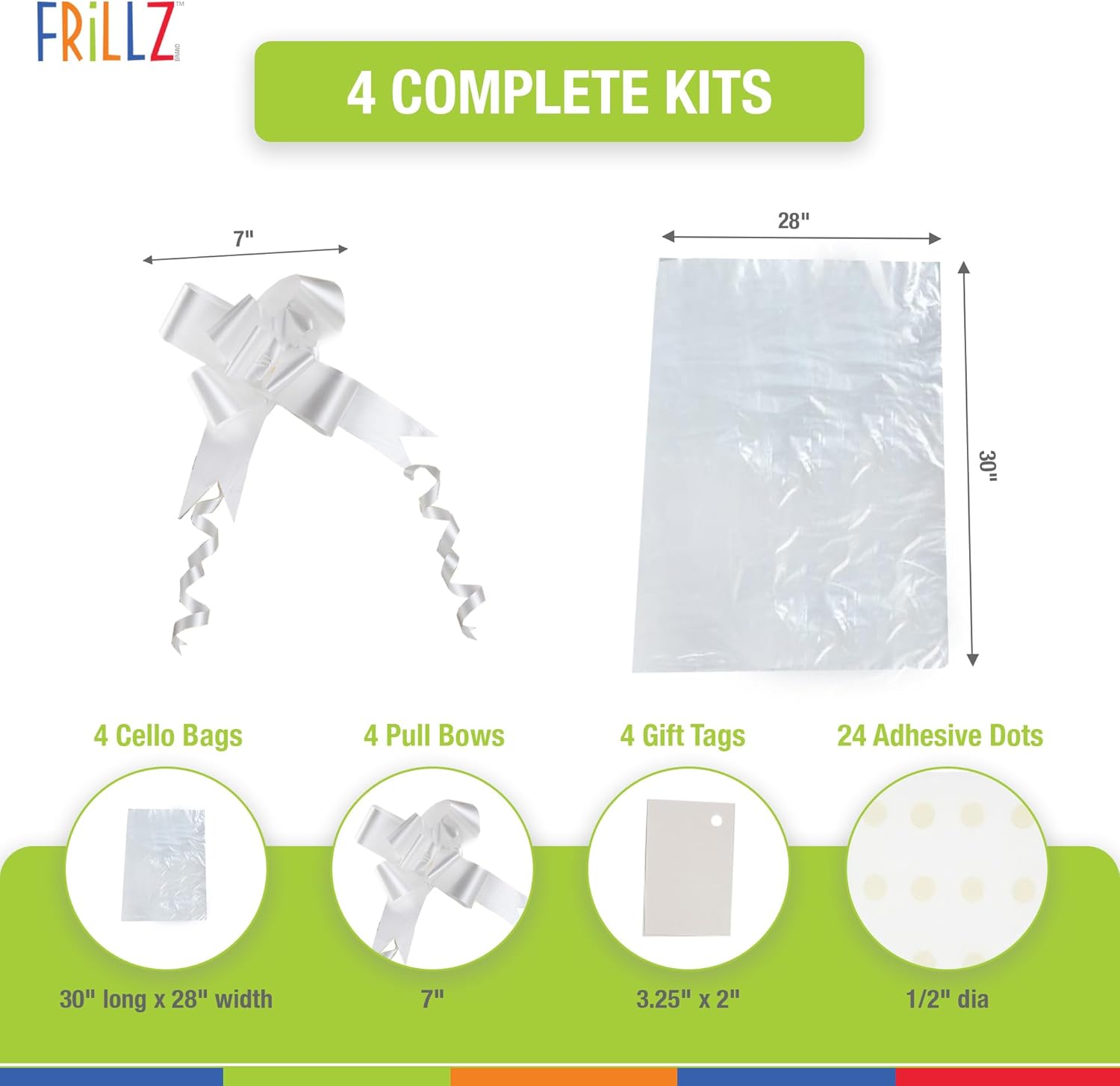 | Included Components | 4 clear cellophane bags, 4 easy pull bows, 4 gift tags, 24 adhesive dots, 1 pound crinkle-cut shredded paper |