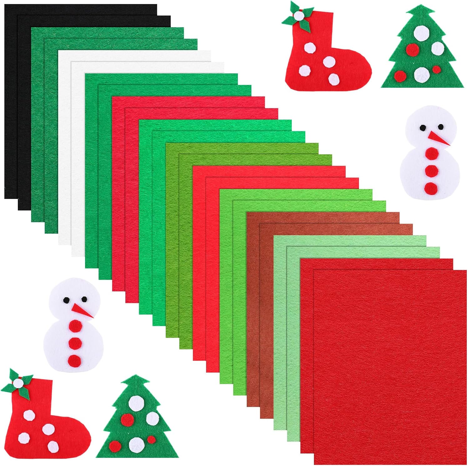Features: Vibrant and Festive Design: Infuse your holiday projects with a burst of color and cheer using our meticulously designed Christmas fabric. This felt fabric comes in a variety of classic and contemporary patterns, perfect for adding a festive touch to any decor. Important Care Instructions for Longevity: To maintain the vibrant quality of the Christmas fabric, it is advisable to hand wash with mild detergent and air dry. Avoid exposure to direct sunlight for extended periods to prevent color fading. This proper care ensures that your felt fabric retains its beauty and function, ready to delight your home every holiday season. Specifications: Material: felt Color: green, grass green, light green, white, orange red, bright red, dark green, olive green, emerald green, rose red, black, brown Size: 20 x 25 cm/ 7.9 x 9.8 inches Package includes: 30 x Christmas felt sheets Notes: Manual measurement, please allow slight errors on size. The color may exist a slight difference due to different screen displays.