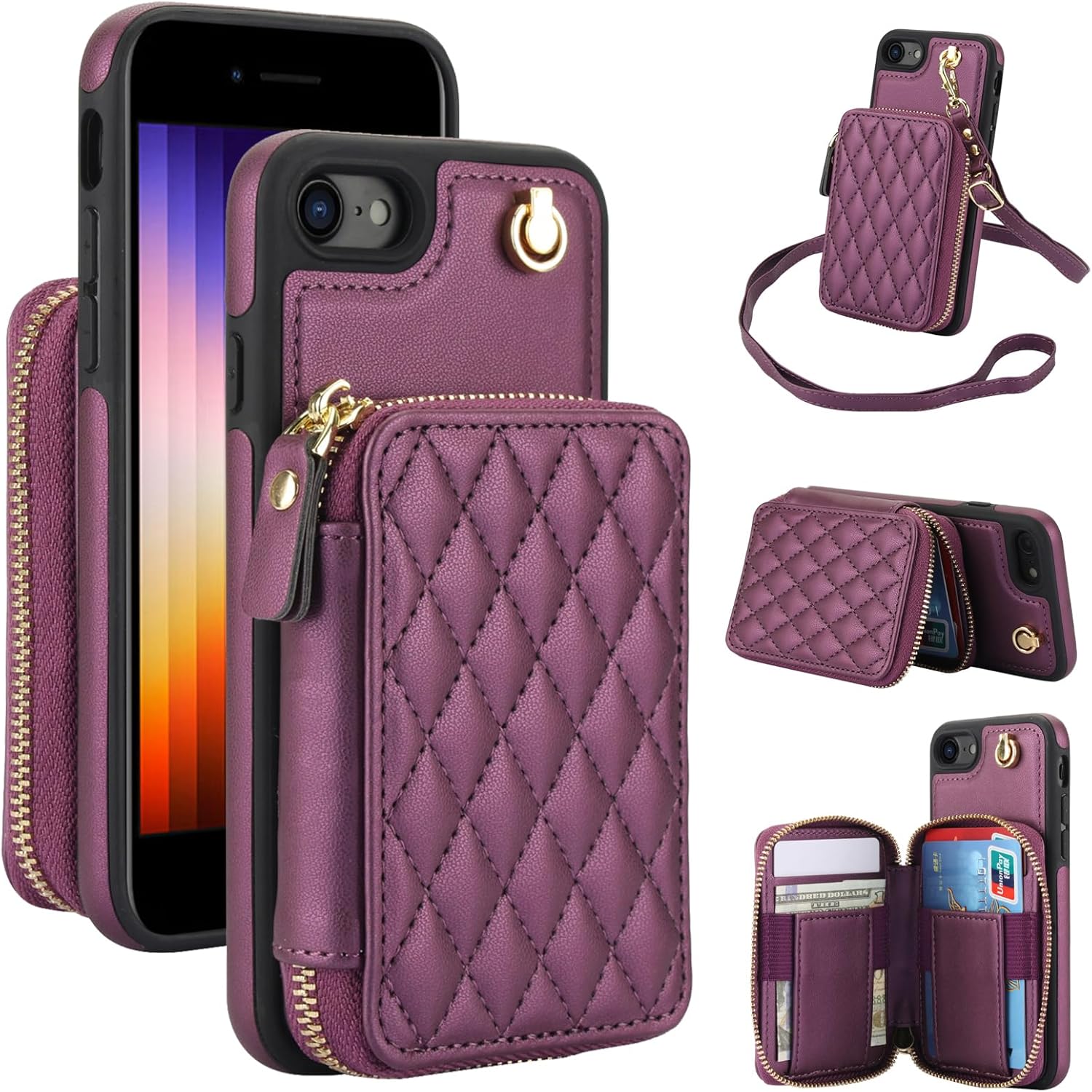 Product Description【Compatible Models】: Compatible with iPhone SE Case 2022/3rd/2020,iPhone 8/7 (4.7 inch), NOT compatible with other devices. 【Package includes】: We will send the phone case with 1 detachable crossbody lanyard + 1 detachable wrist strap. 【RFID Blocking】: This case is made of high-quality durable PU leather above odor. RFID blocking materials effectively block signals and stop being scanned and theft, protecting your credit cards, debit cards, ID cards or any other RFID-enabled cards.