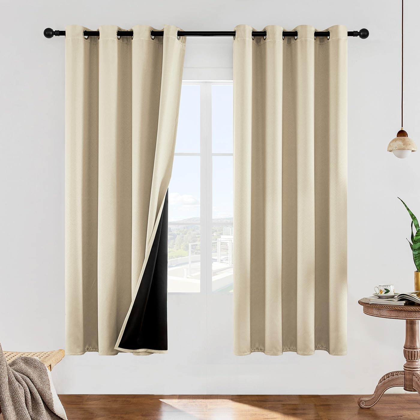 YUNJIN blackout curtain collection can get you a good night sleep, sweet afternoon nap and perfect weekend lie-ins. They block unwanted light, keeping your room dark from the bright morning sun and night street lamps. Besides, solid color provides a modern and minimalistic look, making a perfect combination of fashion and function, suitable for living room, bedroom, kids' room, nursery room, office, villa, hall and department etc.Darken Your Room, Brighten Your Dream Impede 100% sunlight and UV rays . Block out 100% light of street lamp. Lower street noise. Ensure total privacy.Save Money, Save Energy Reduce energy loss through window during winter and summer, lower your seasonal power usage and cut your energy bill. Protect furniture and carpet from the fading effects of the sun.Quality Never Goes Out Of Fashion Made of innovative Triple-Weaved Textured Microfiber Blackout Fabric. Soft touch and no chemical smell.Exquisite seaming and Thread trimmed.